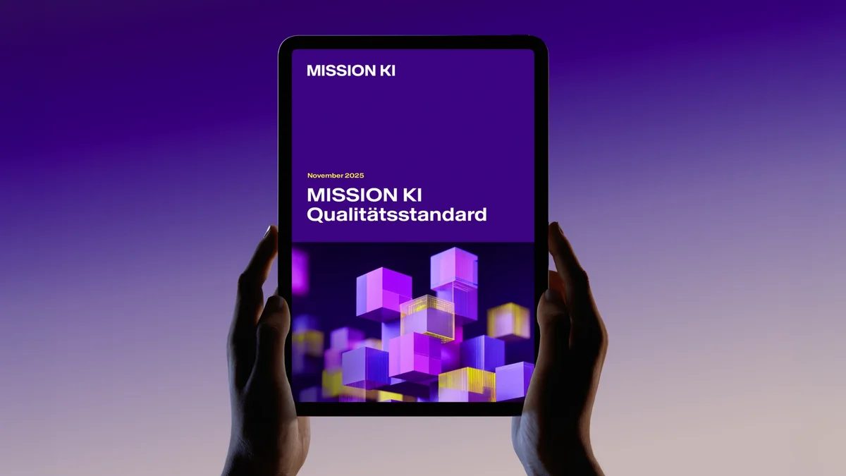 MISSION KI präsentiert heute beim AI Quality & Governance Day in Berlin einen freiwilligen Qualitätsstandard für Niedrigrisiko-KI-Systeme. Ergänzend wird ein digitales Prüfportal veröffentlicht, das Unternehmen die praktische Anwendung erleichtert. Gemeinsam ermöglichen Standard und Portal eine strukturierte Bewertung der Qualität von KI-Systemen, die sich unterhalb der Hochrisikoschwelle befinden. Für diesen Bereich sieht der EU AI Act bislang nur Transparenzpflichten vor.